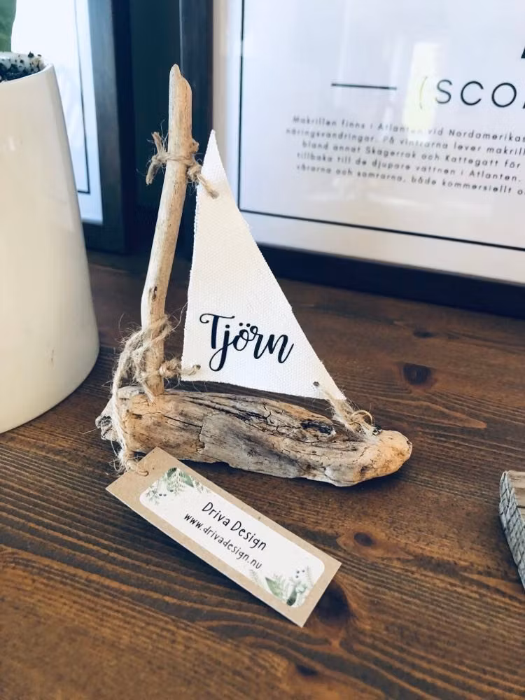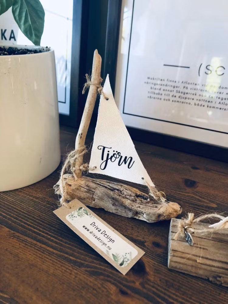 Segelbåt Tjörn 150 kr Segelbåt av drivved med texten Tjörn.Mått ca: 13x14x2,5 cm I lager. Lägg i korgen Dela Lagersaldo: 1 Information Segelbåt av drivved med texten Tjörn.Mått ca: 13x14x2,5 cm