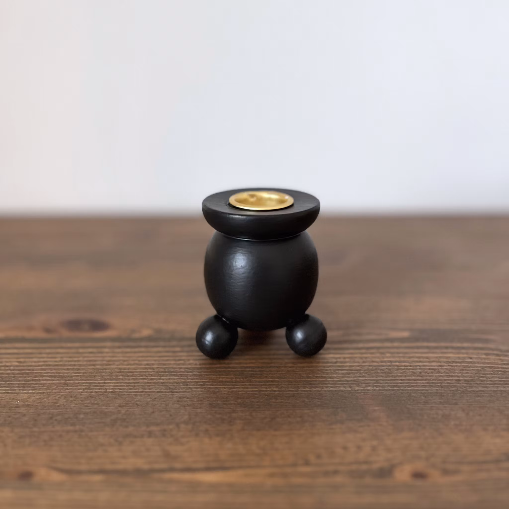 Klassisk liten kulljusstake som fått nytt liv genom att målas om i en svart matt färg med lyster. Lätta spår av tidigare användning bidrar till en mjuk patina och karaktär.