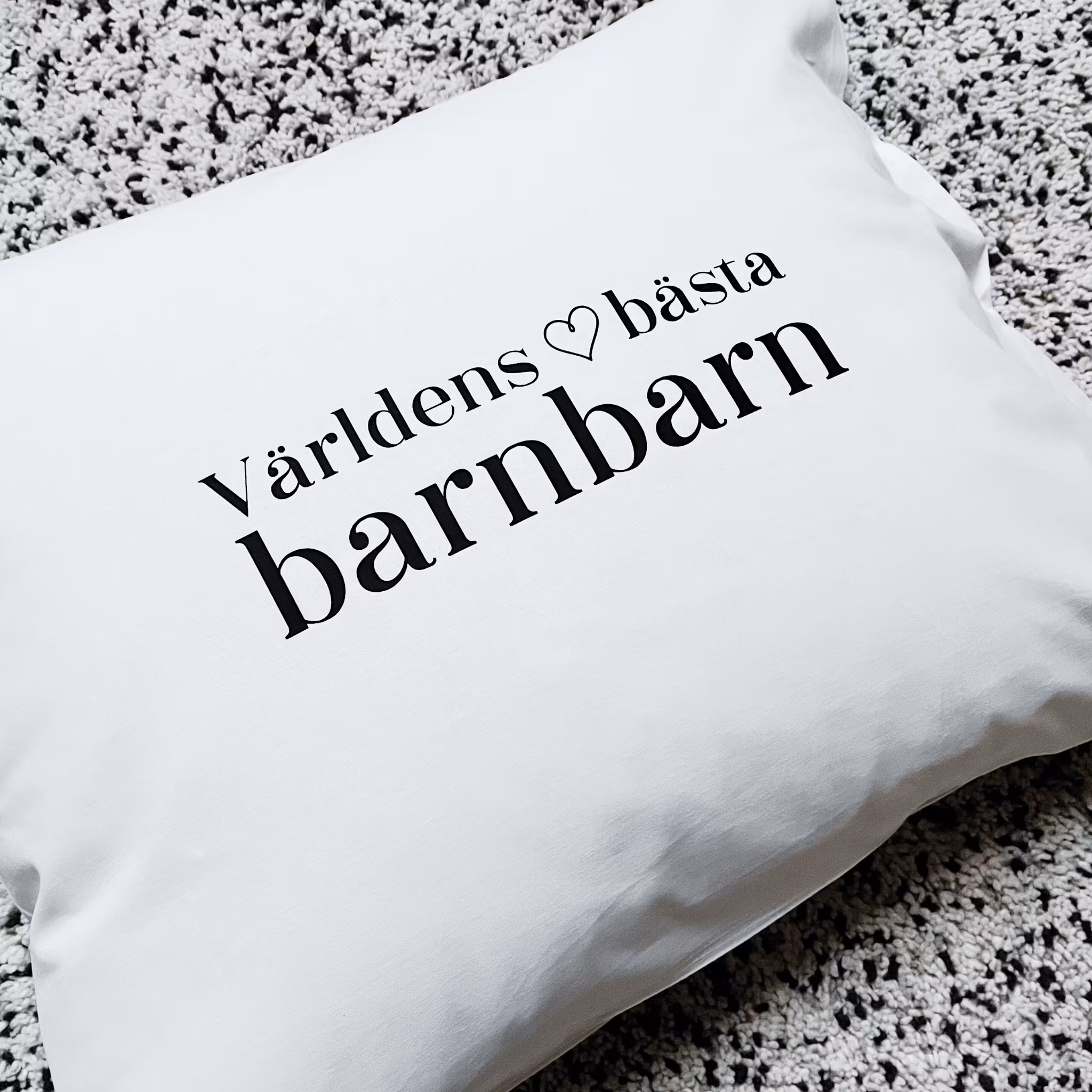 Trycket "Världens bästa barnbarn" är gjort i en stilfull och tydlig design som gör örngottet både charmigt och personligt. Perfekt som present från mor- eller farföräldrar till ett barn som betyder lite extra.